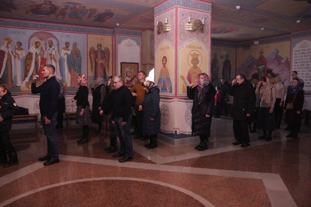 Вечерняя служба — всенощное бдение проходило в храме Святых Царственных страстотерпцев. Службу возглавил иерей Владимир Коблов, ему сослужил игумен Серафим Кузьминов.