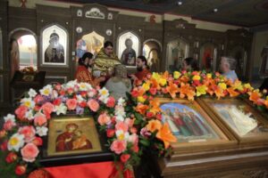 Сегодня, 6 мая 2023г., Православная Церковь празднует день Иверской иконы Божией Матери (второе обретение списка иконы 2012), Вмч. Георгия Победоносца (303), Мц. царицы Александры Римской (303). В храме в честь Святых Царственных Страстотерпцев была отслужена утром Божественная Литургия. Службу возглавил иерей Георгий Джмиль, ему сослужили иеромонах Серафим Кузьминов и дьякон Виталий Лобанов. Состоялся крестный ход.