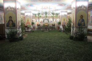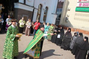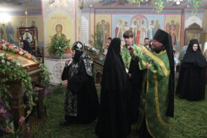 В храме Святых Царственных Страстотерпцев накануне вечером прошло всенощное бдение, Службу возглавил иеромонах Серафим (Кузьминов). Ему сослужили иеромонах Анастасий (Заварзин), иерей Виталий Лобанов. Утром – ранняя Божественная Литургия и Великая вечерня с коленопреклонением совершалась в надвратном храме в честь Новомучеников и Исповедников, в земле Симбирской просиявших. Служил иеромонах Анастасий (Заварзин). Вторая служба — в храме во имя Святых Царственных Страстотерпцев. Иеромонах Серафим (Кузьминов) служил с иереем Виталием Лобановым. Здесь, по окончании Божественной Литургии, прошли крестным ходом о даровании Победы. Затем, также — Великая вечерня с коленопреклонением.