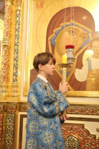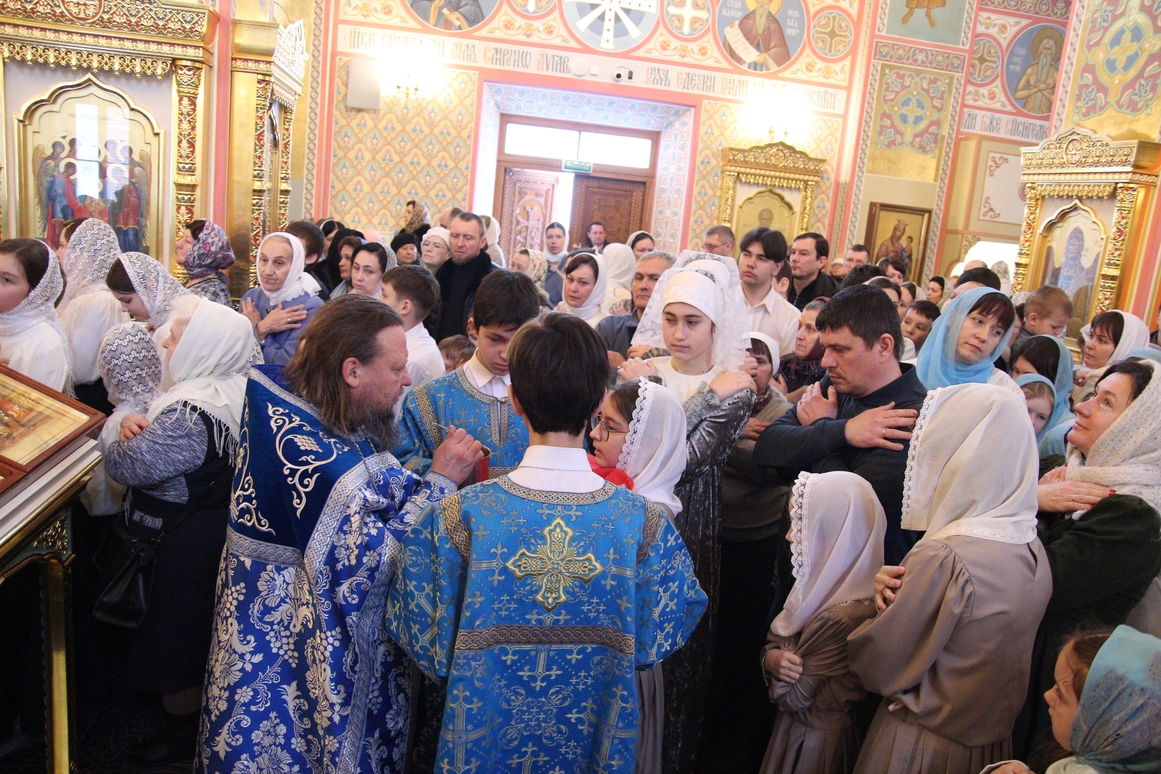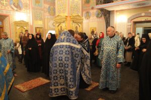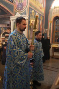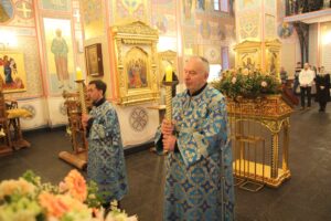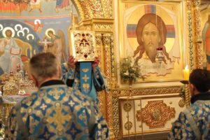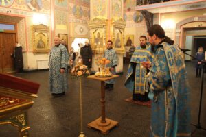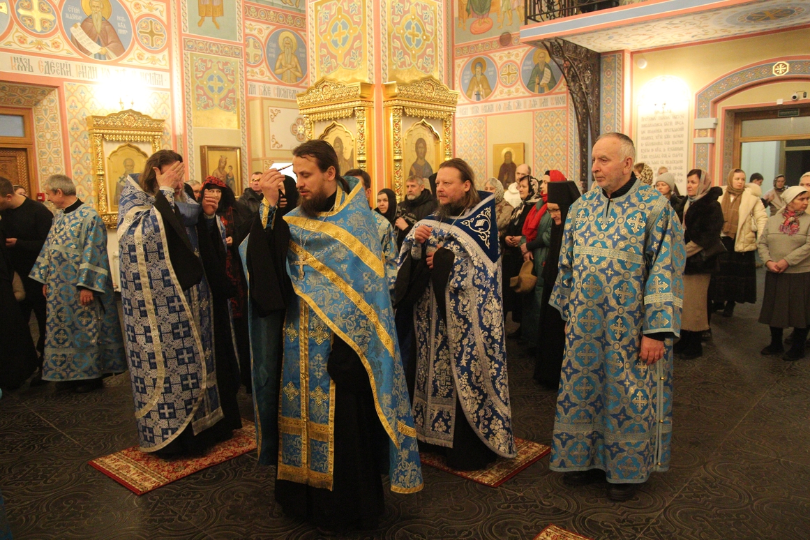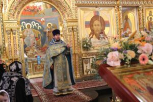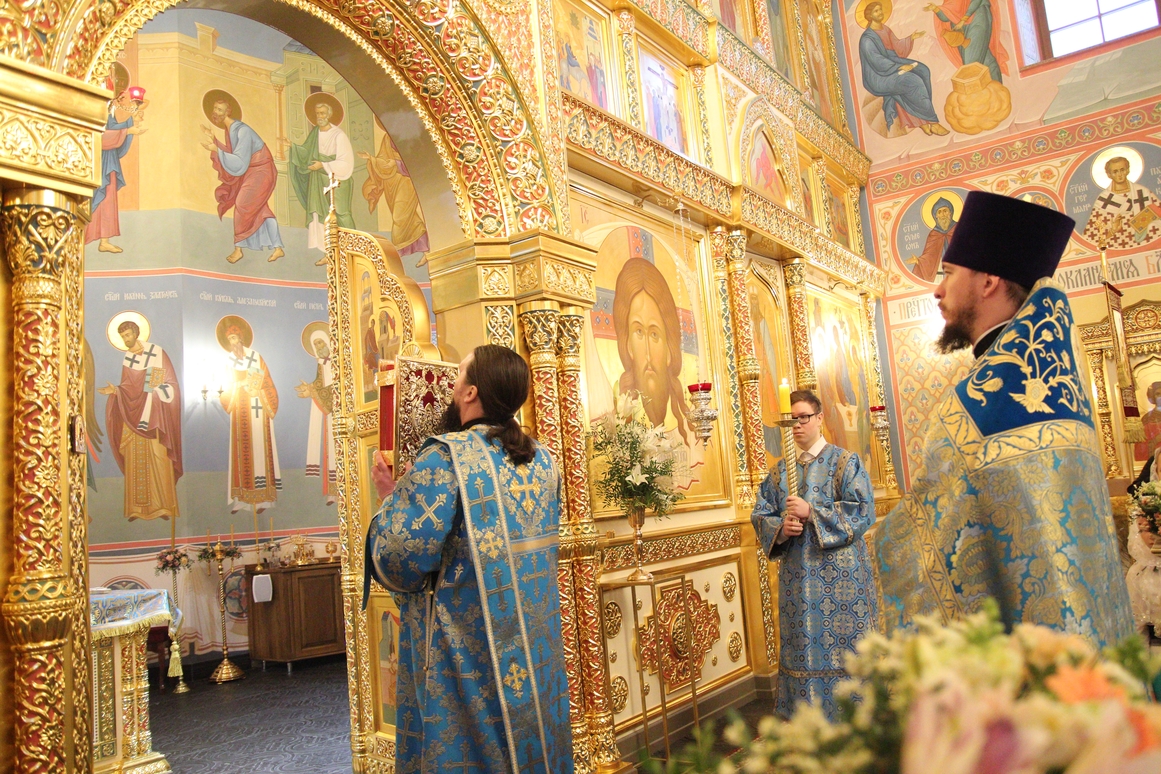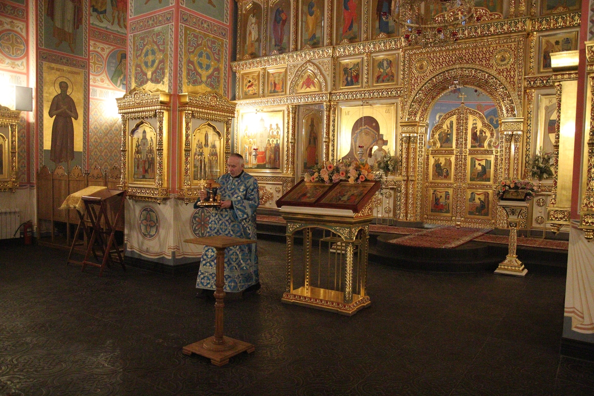 Накануне, вечером, в храме в честь Спаса Нерукотворного прошло Всенощное бдение. Службу возглавил иеромонах Серафим (Кузьминов). Ему сослужили иеромонах Анастасий (Заварзин), иерей Виталий Лобанов, диакон Сергий Петров.