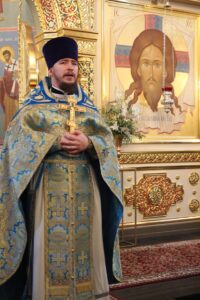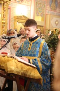Вторую Божественную литургию, которая совершалась в храме в честь Спаса Нерукотворного, возглавил иерей Роман Солодко, ему сослужили иеромонах Серафим (Кузьминов), иерей Виталий Лобанов и диакон Сергий Петров.